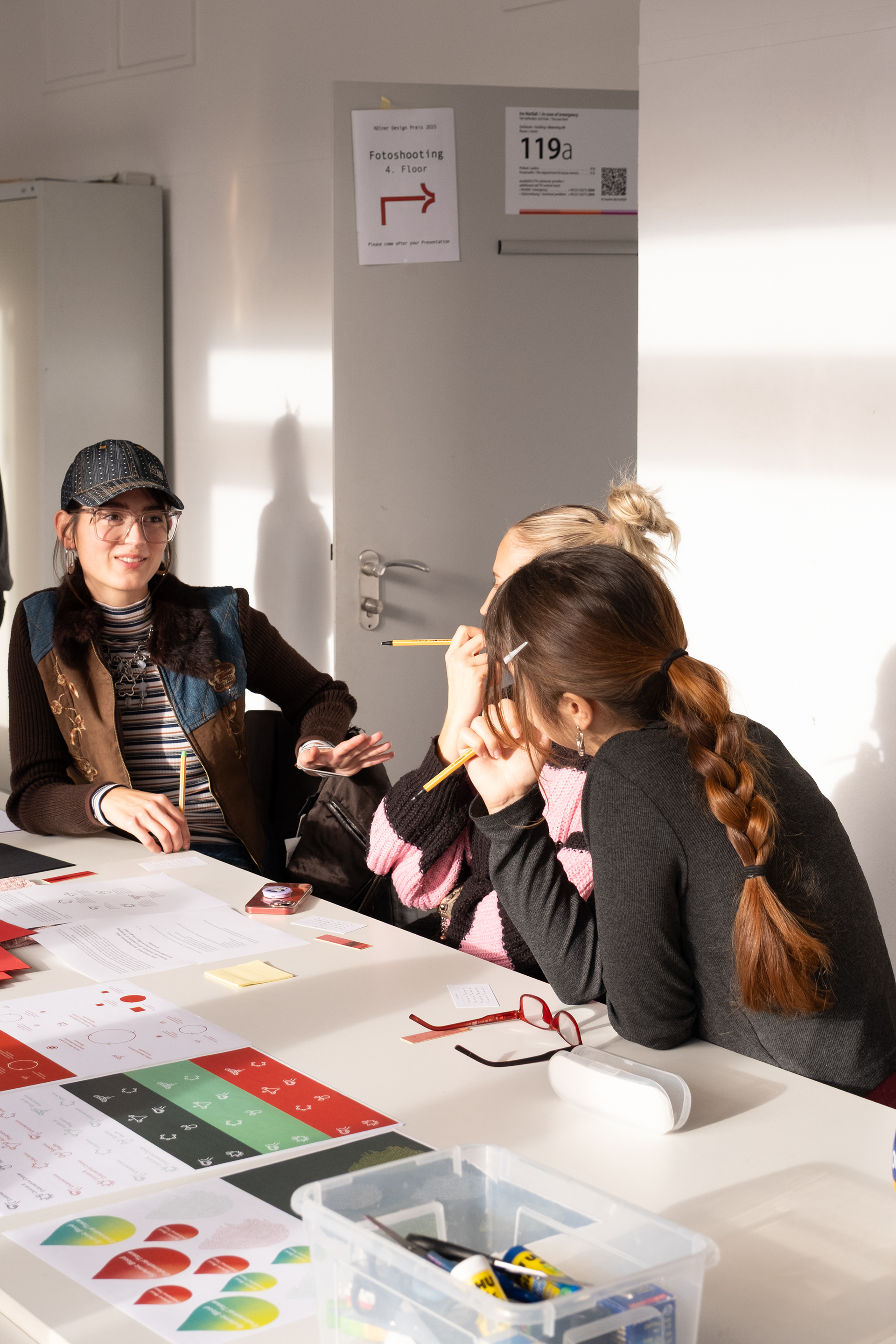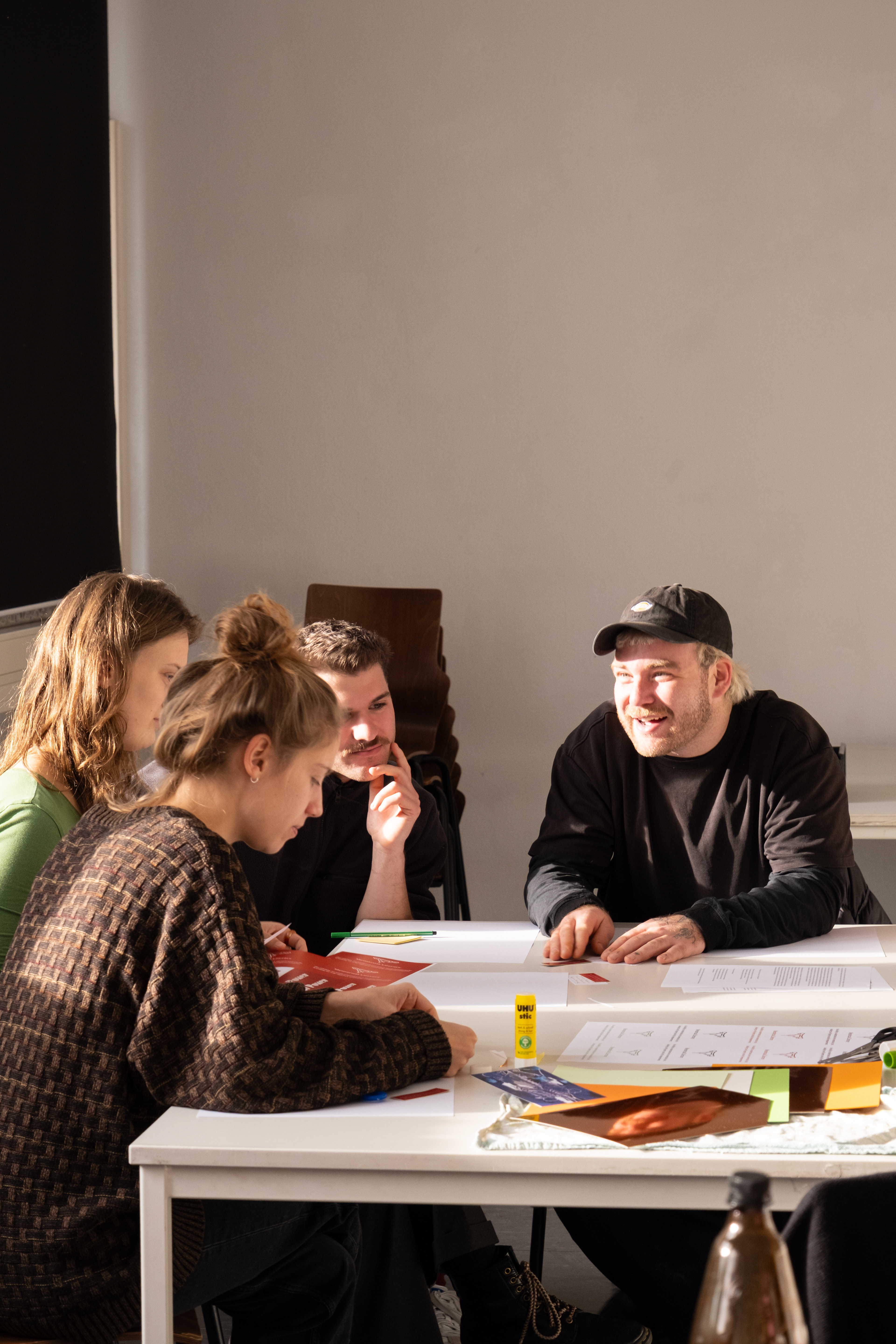 The session incorporated scientific insights, feminist theory, and interactive learning activities. After a brief introduction to current research and diagnostic technologies, participants explored thematic stations in small groups. Each station offered academic sources, a short quiz, and an open reflective question. Participants shared their responses on sticky notes, creating a collaborative map of perspectives, questions, and lived experiences. They also collected collage materials at each station in order to create their own poster that symbolized the knowledge they gathered along the way.
